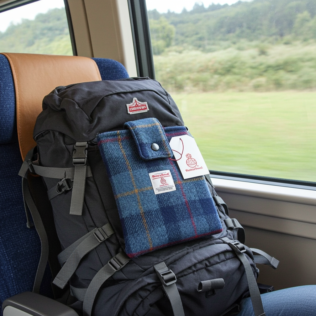 Harris Tweed book sleeve in Navy check with red & yellow lines